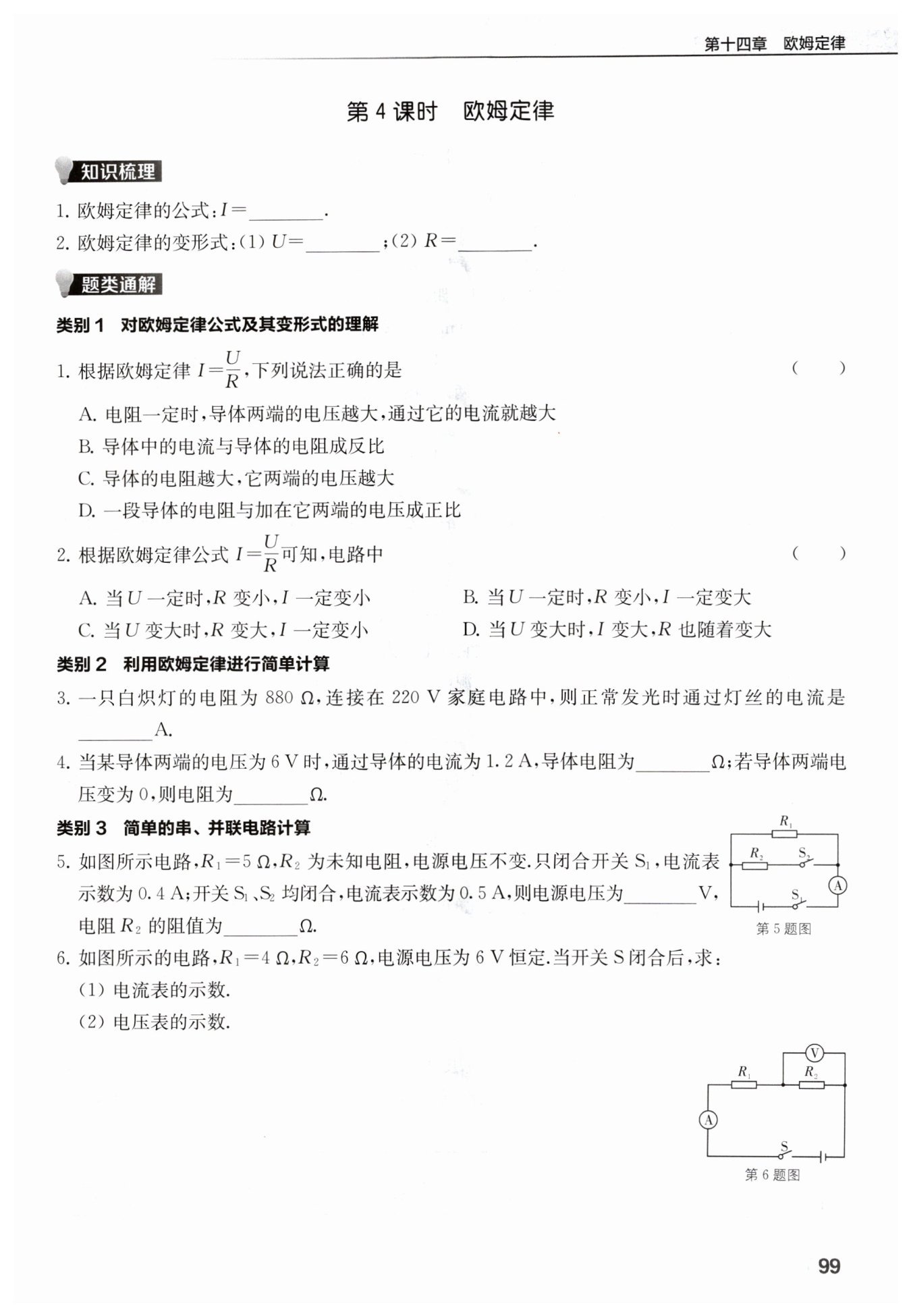 解:?$(1)I_{ }=\frac {U_{ }}{R_{1 }+R_2}=\frac {{ 6 }\ \text {V}}{{ 4 }Ω+6Ω}={ 0.6 }\ \text {A}$?