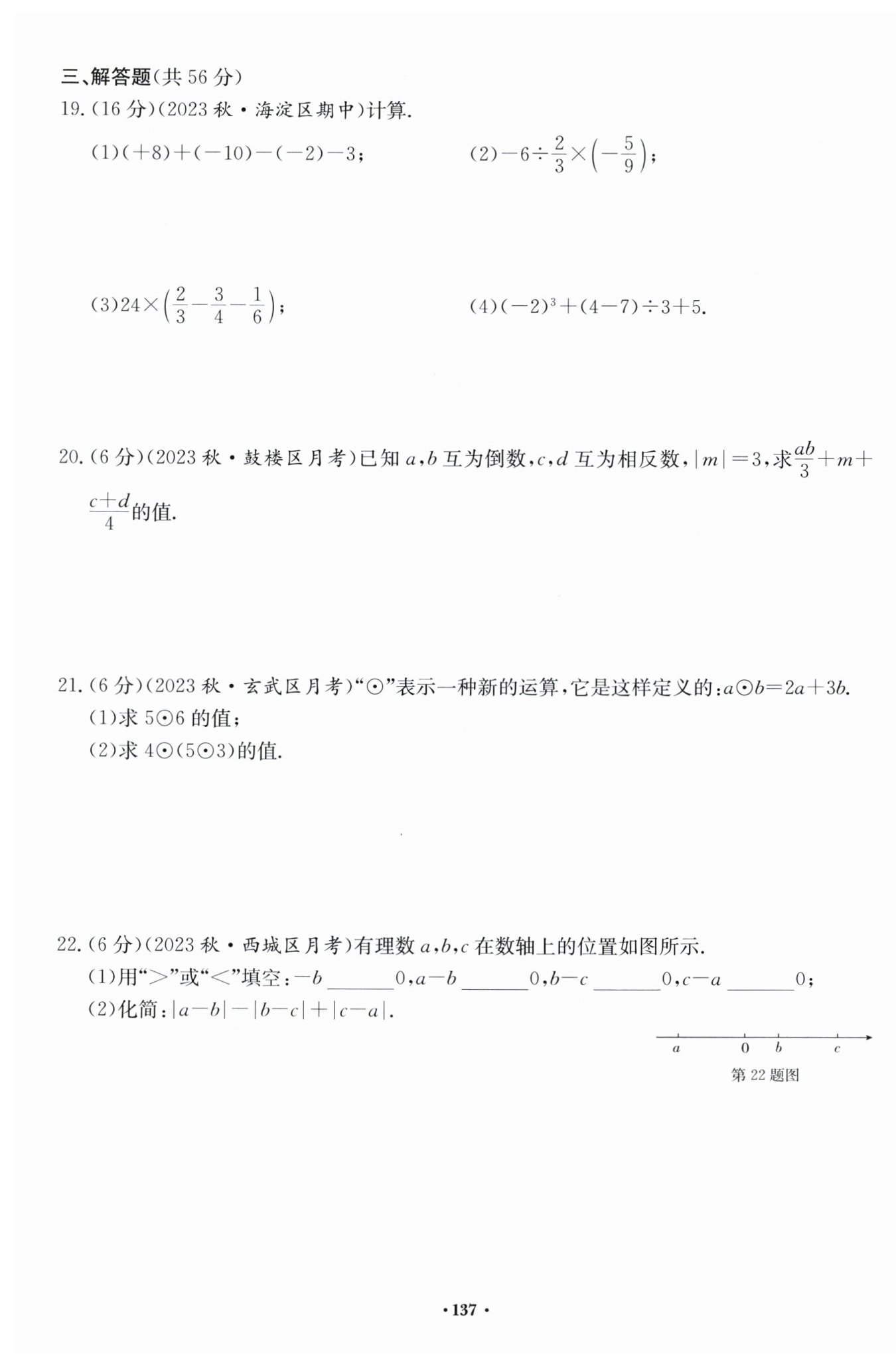 當(dāng)?$m=-3$?時,?$\frac {ab}{3}+m +\frac {c+d}{4} =\frac {1}{3}+(-3)+\frac {0}{4} =-\frac {8}{3} $?
