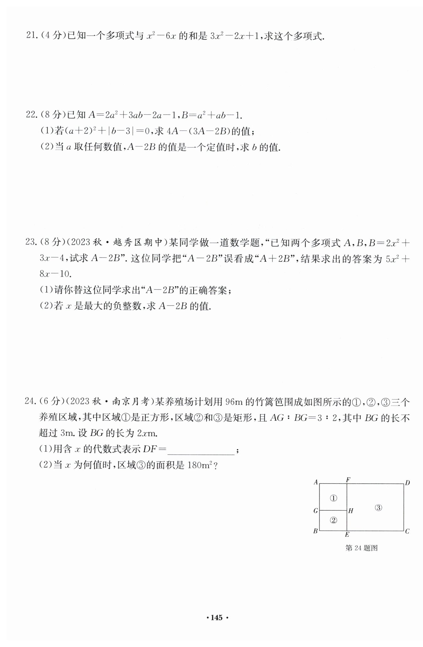 ∴?$4A-(3A-2B)=4A-3A+2B=A+2B=(2a2+3ab-2a-1)+2(a2+ab-1)$?