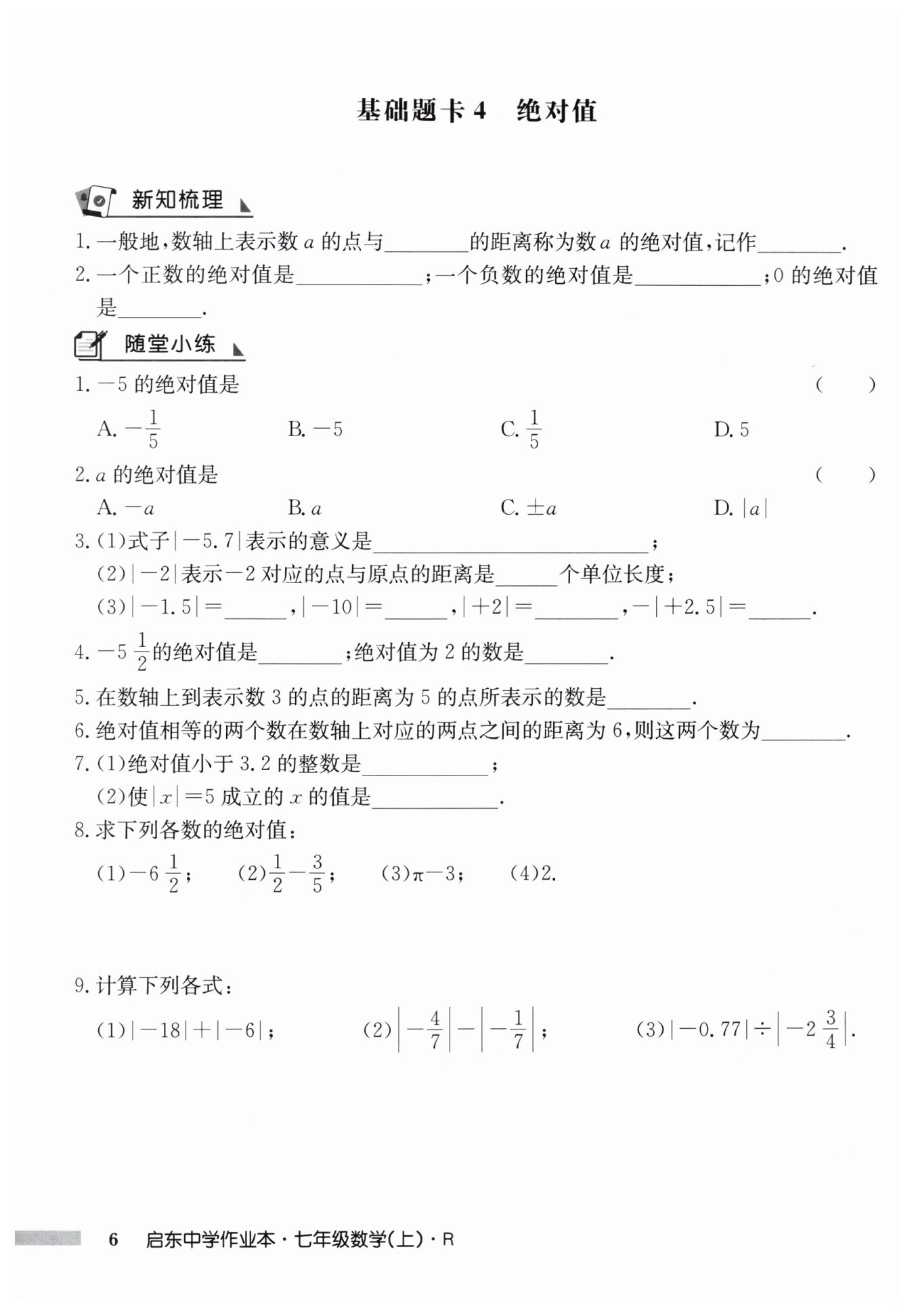 解:?$(1)|-6\frac 12|=6\frac 12$?;?$(2)|\frac 12-\frac 35|=|-\frac {1}{10}|=\frac {1}{10}$?;