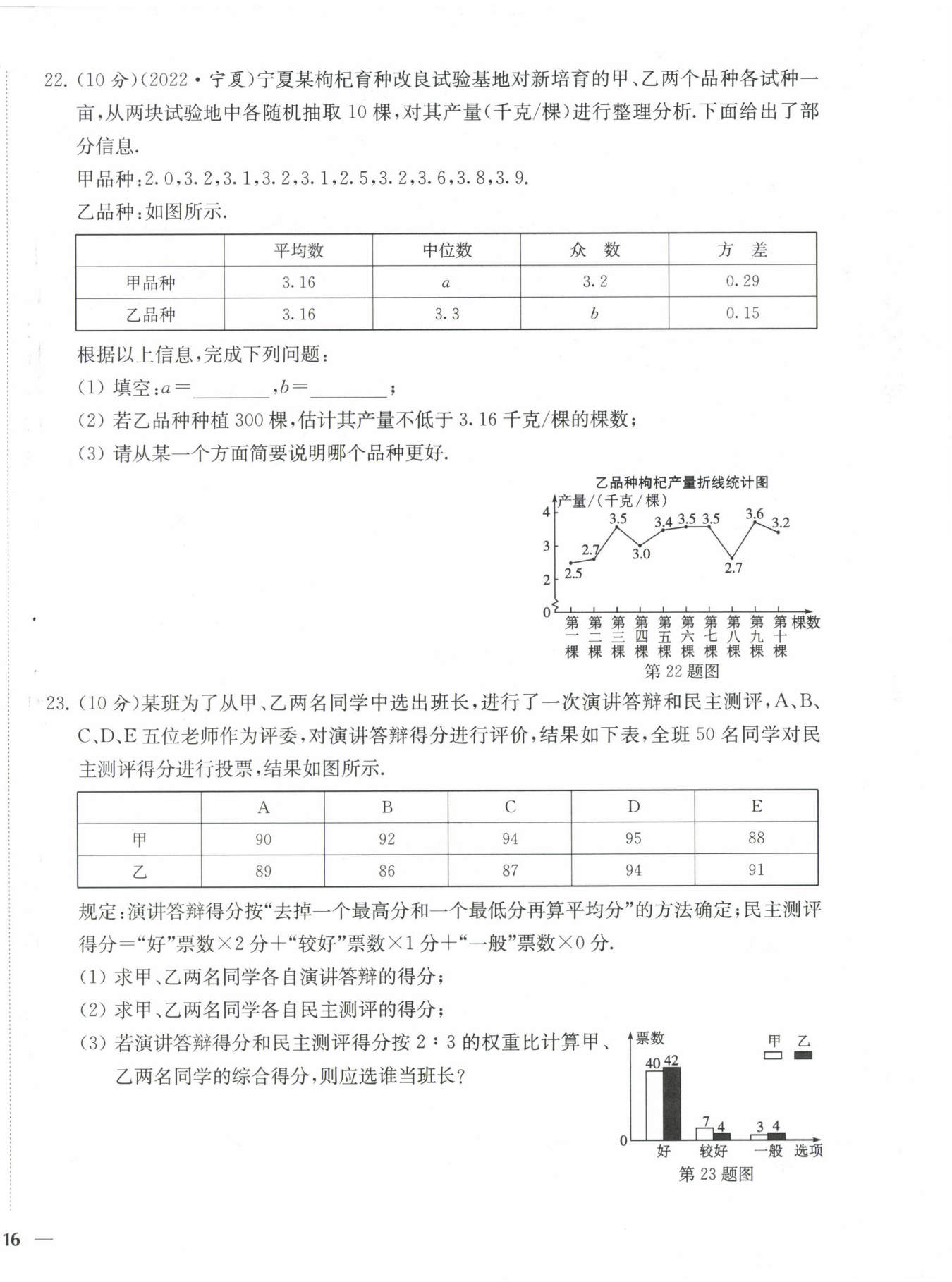 $(2) 甲同學(xué)民主測評的得分為 40 \times 2+7=87 (分), $