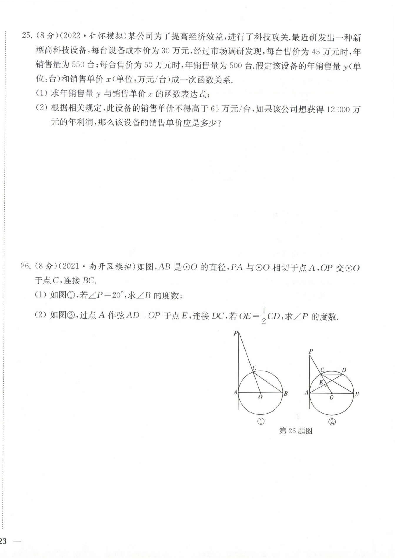 $解:(1) \because P A 與 \odot O 相切于點(diǎn) A, $