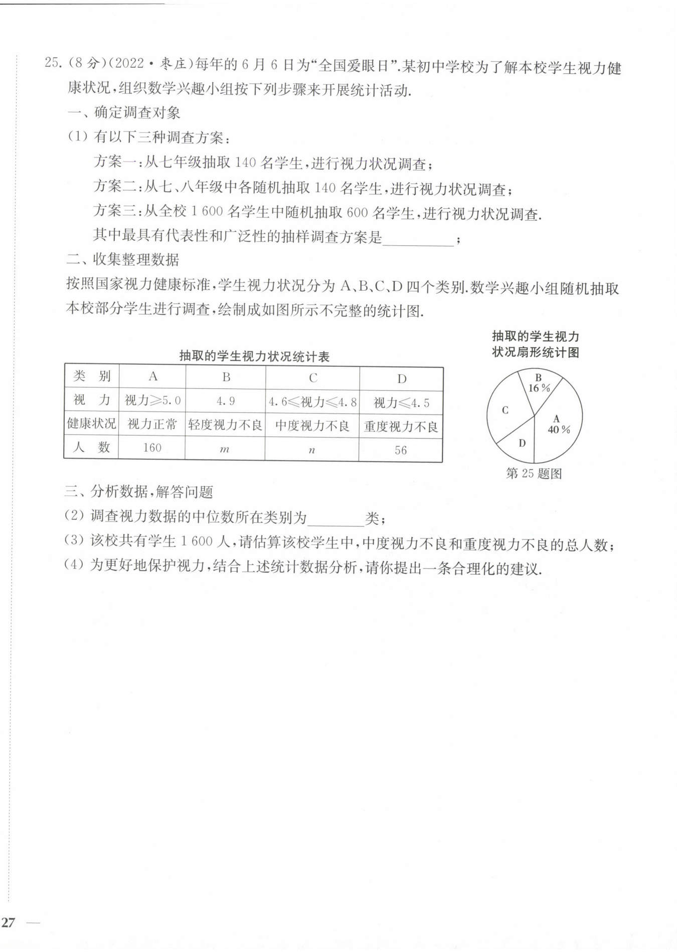 $解:(3)1600×(1-40\%-16\%)=704(人)$