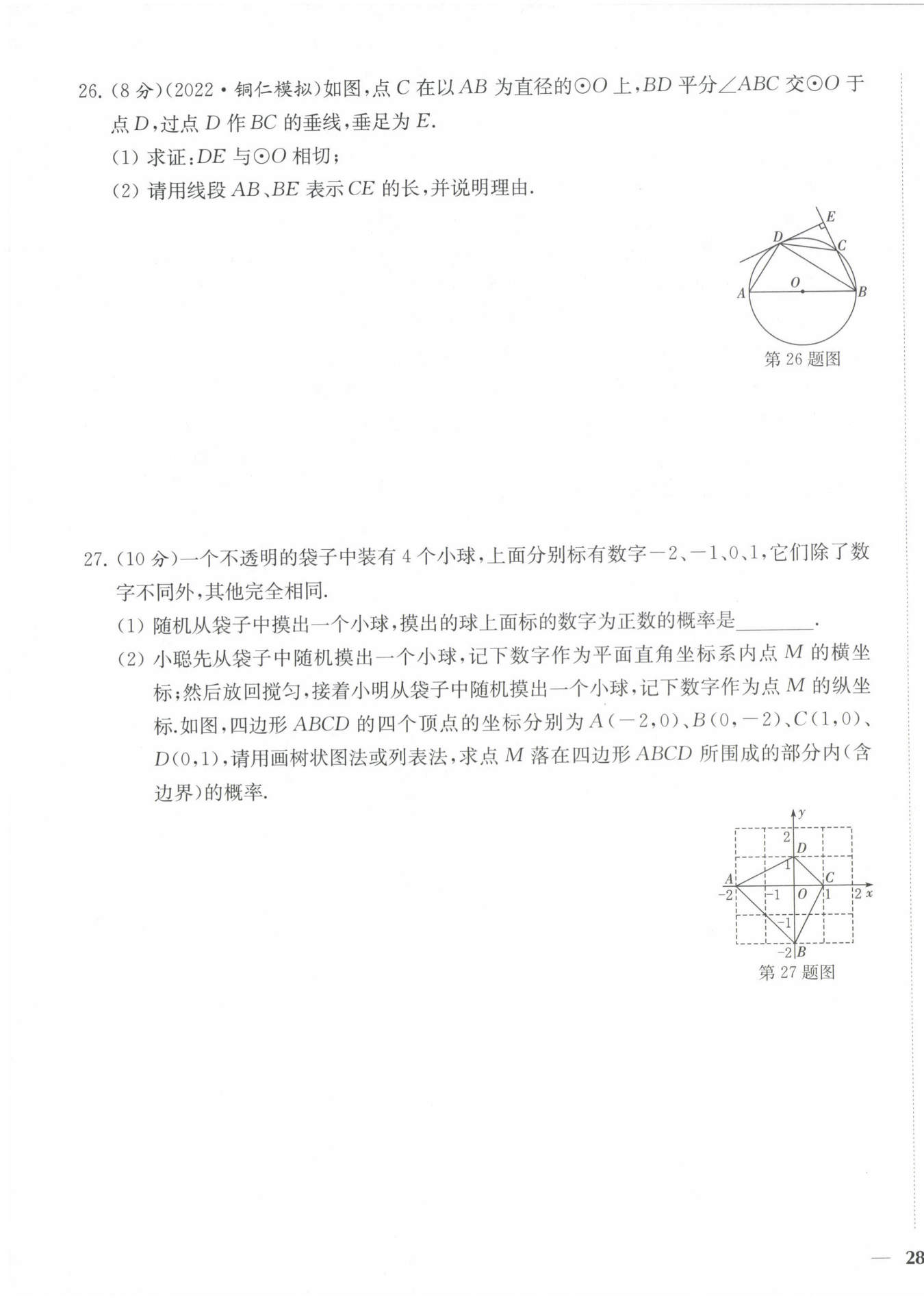$\therefore 點 M 落在四邊形 A B C D 所圍成的部分內(nèi) (含邊界) 的概率為 \frac {8}{16}=\frac {1}{2}。$