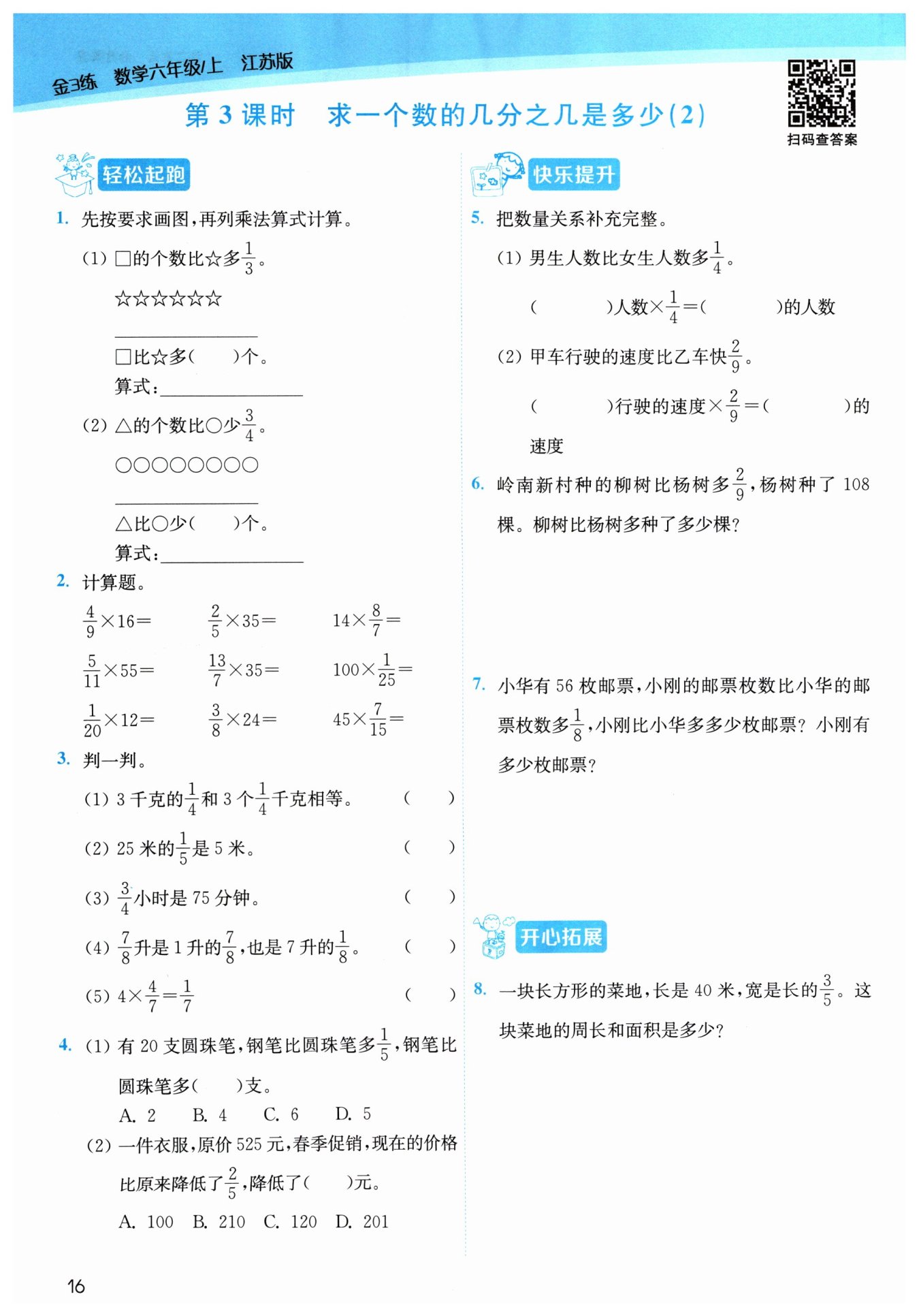 ?$40×\frac {3}{5}=24($?米?$)$?
