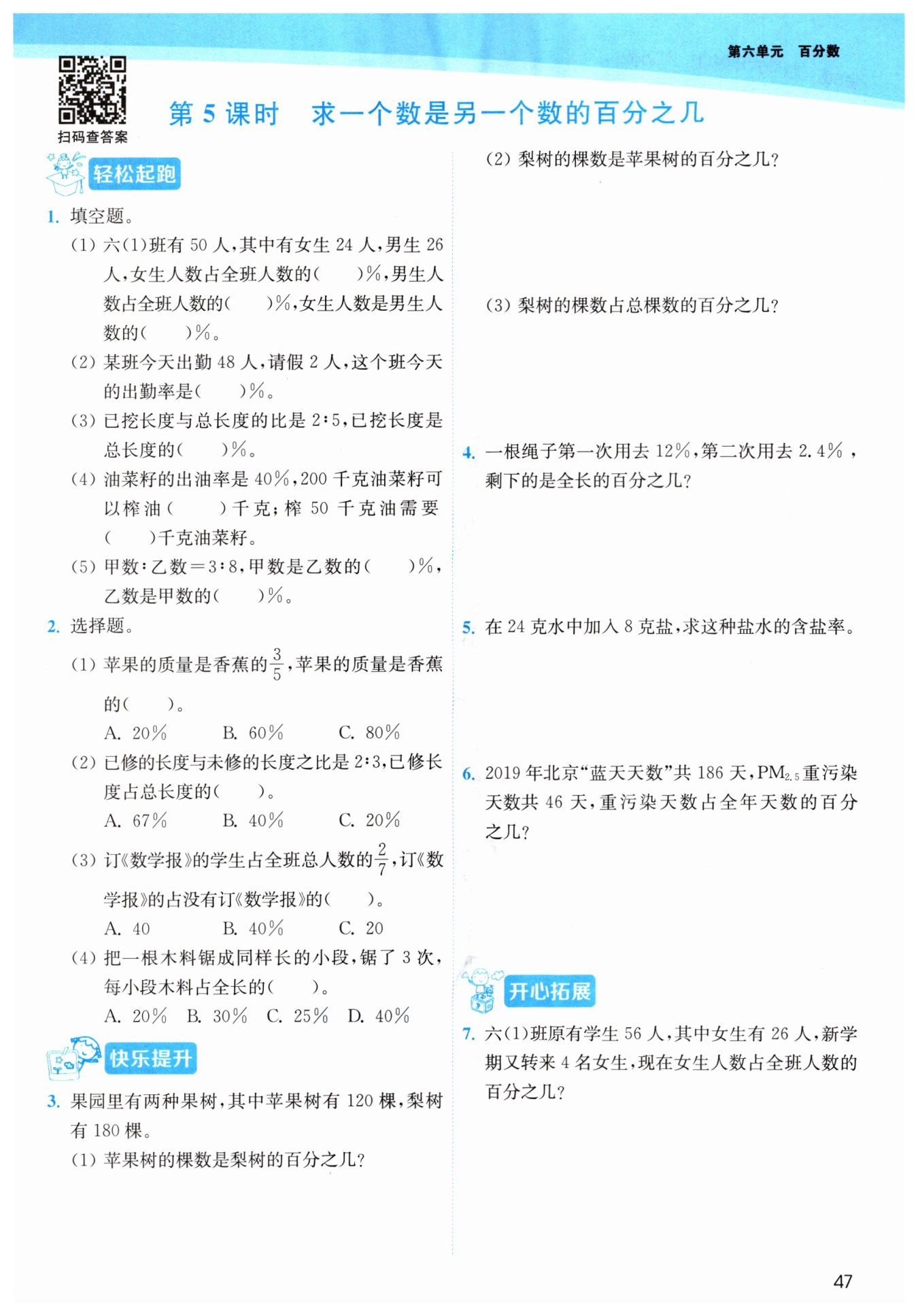 答:梨樹的棵數(shù)是蘋果樹的150%。