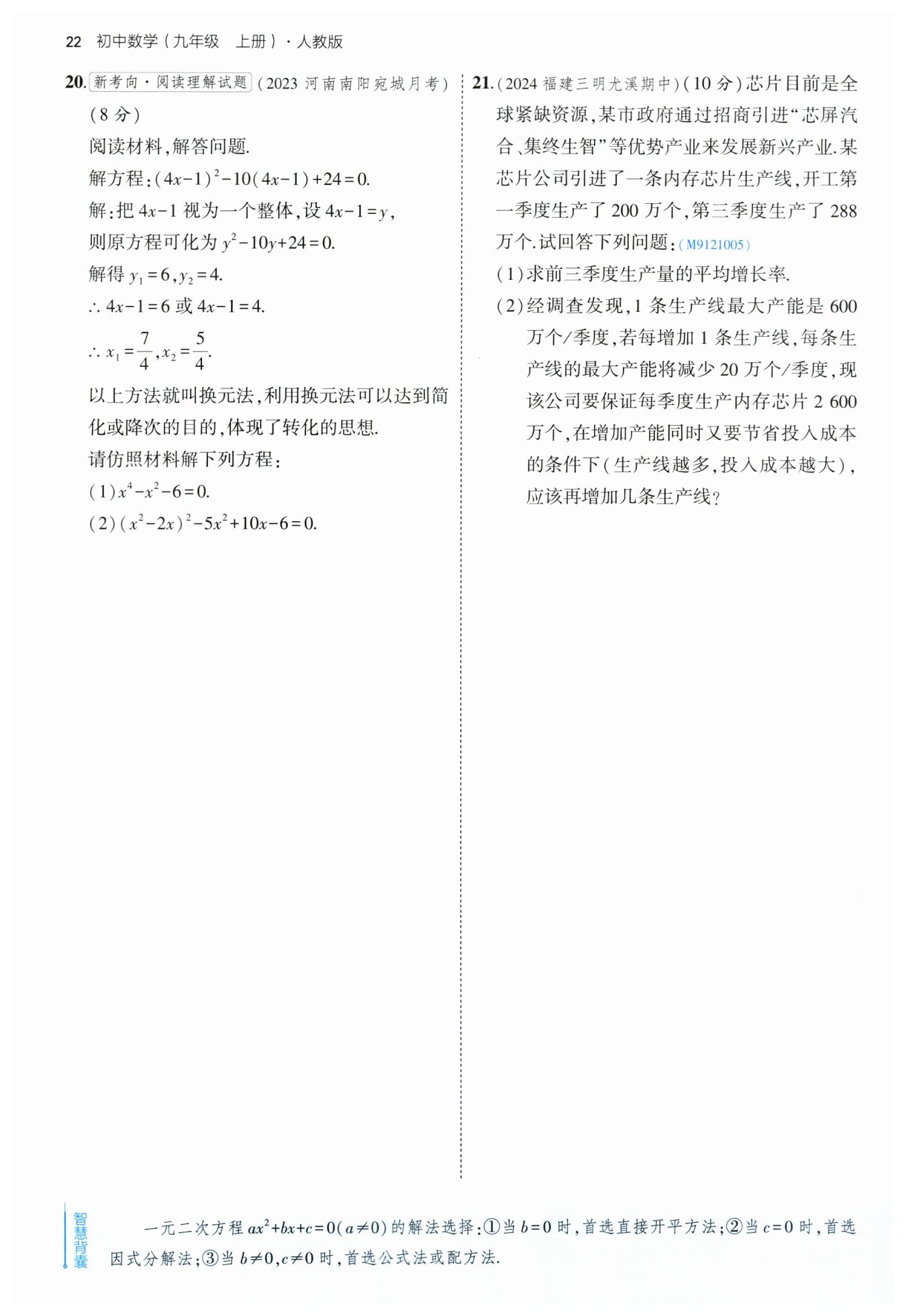 ?$(2)$?設?$x2-2x=y$?,則原方程可化為?$y2-5y-6=0$?