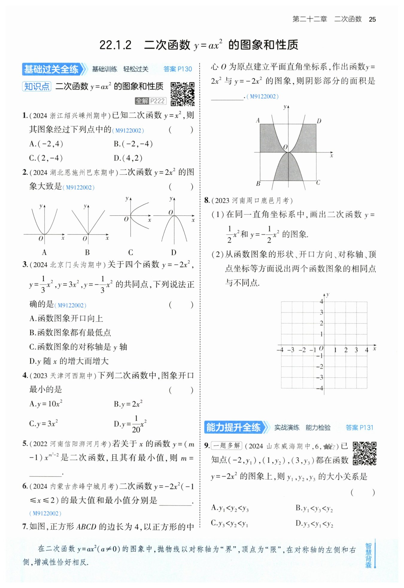 ?$(2)$?相同點:形狀都是拋物線,對稱軸都是?$y$?軸