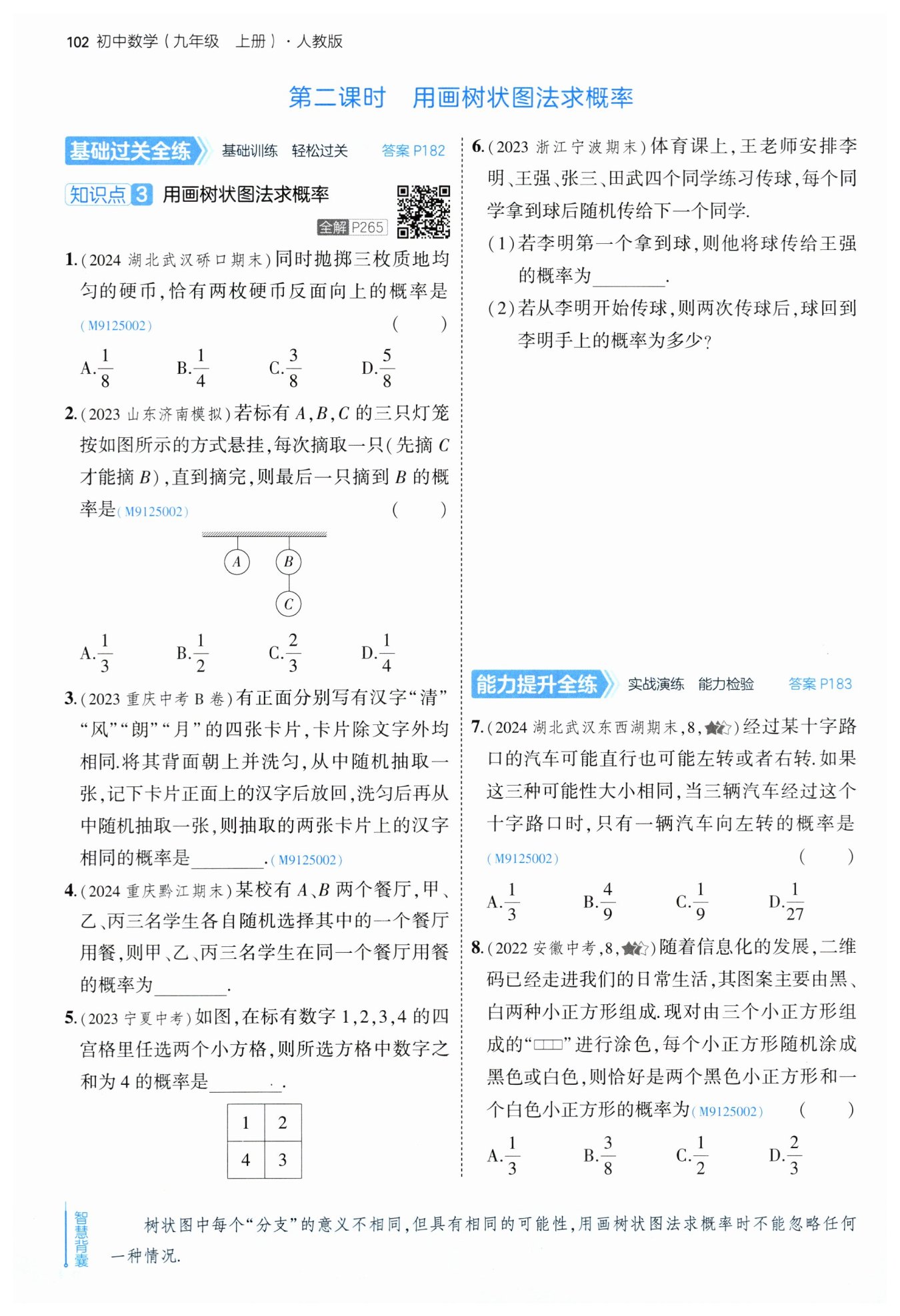 由樹狀圖可知,共有?$9$?種等可能的結果,