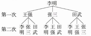 ∴兩次傳球后,球回到李明手上的概率為?$\frac {3}{9}=\frac {1}{3}$?