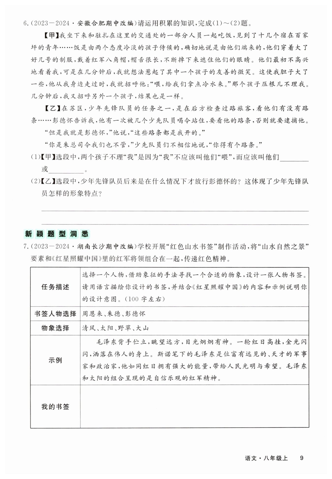 示例三:彭德懷站在畫(huà)面的中央,目光堅(jiān)定,在他的腳下生長(zhǎng)著一些茂盛的野草。書(shū)中的彭德懷面對(duì)敵人的嚴(yán)刑拷打頑強(qiáng)不屈、信念堅(jiān)定,如同野草般頑強(qiáng)。彭德懷和野草的組合呈現(xiàn)的是信念堅(jiān)定、堅(jiān)強(qiáng)不屈的紅軍精神。