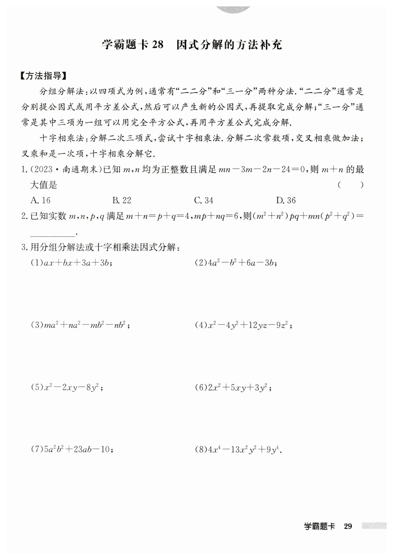 $解:原式=a^{2}(m+n)-b^{2}(m+n)$