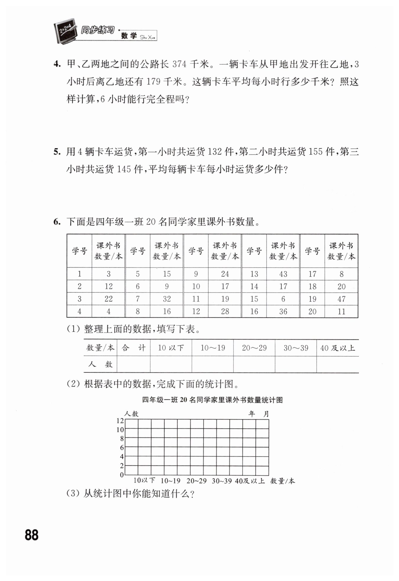 答:四年級(jí)一班20名同學(xué)擁有課外讀物本數(shù)在10~19本的人數(shù)最多 ,
