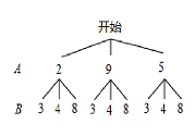 $所以共有9種等可能的結(jié)果,A大于B的有5種$