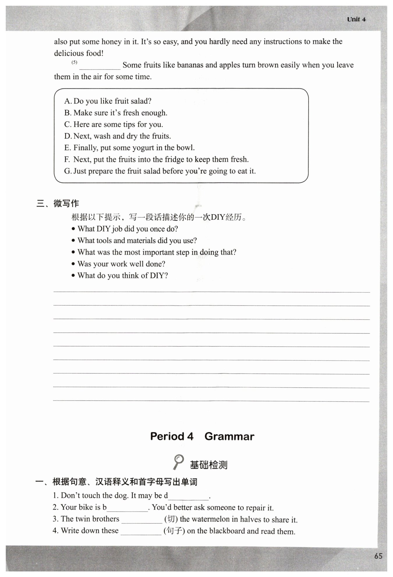 Last week, I made a kite myself. I used some tools and materials, such as paper,