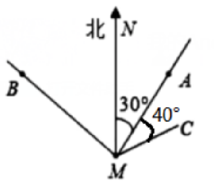 點?$B$?的位置為北偏西?$ 50°$?,且距離點?$M 2200\ \mathrm {m}{處}.$?