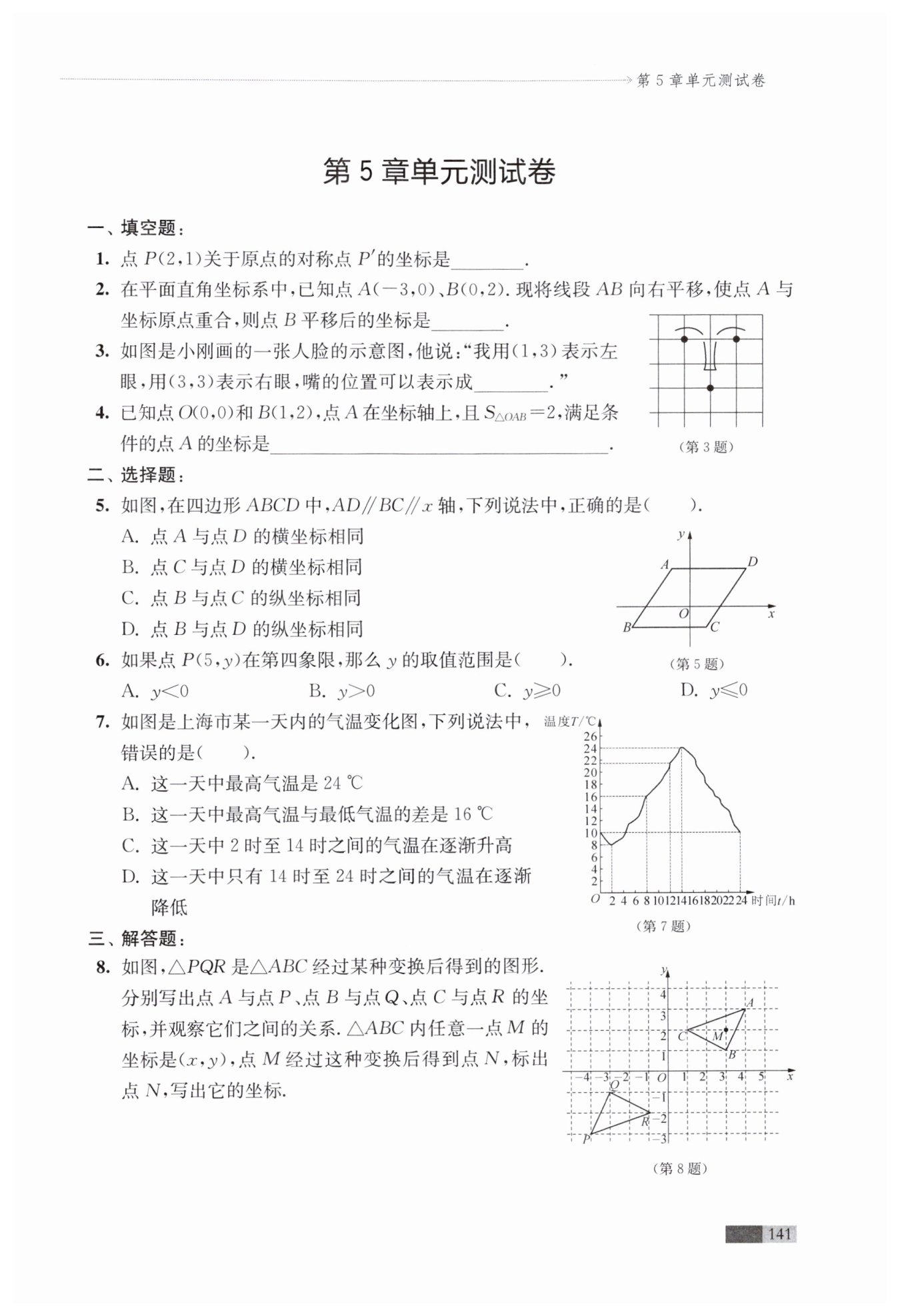解:三角形ABC與三角形PQR各對(duì)應(yīng)點(diǎn)的坐標(biāo)分別