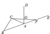$解:AG垂直平分CF,理由:$ $∵AD平分∠EAC,∴∠EAD=∠DAC$ $在△ACG和△AFG中$ ${{\begin{cases} {{AG=AG}} \\ {∠GAC=∠GAF} \\ {AC=AF} \end{cases}}}$ $∴△ACG≌△AFG(SAS)$ $∴CG=FG$ $∵AC=AF,CG=FG$ $∴A,G都在CF垂直平分線上$ $∴AG垂直平分CF$