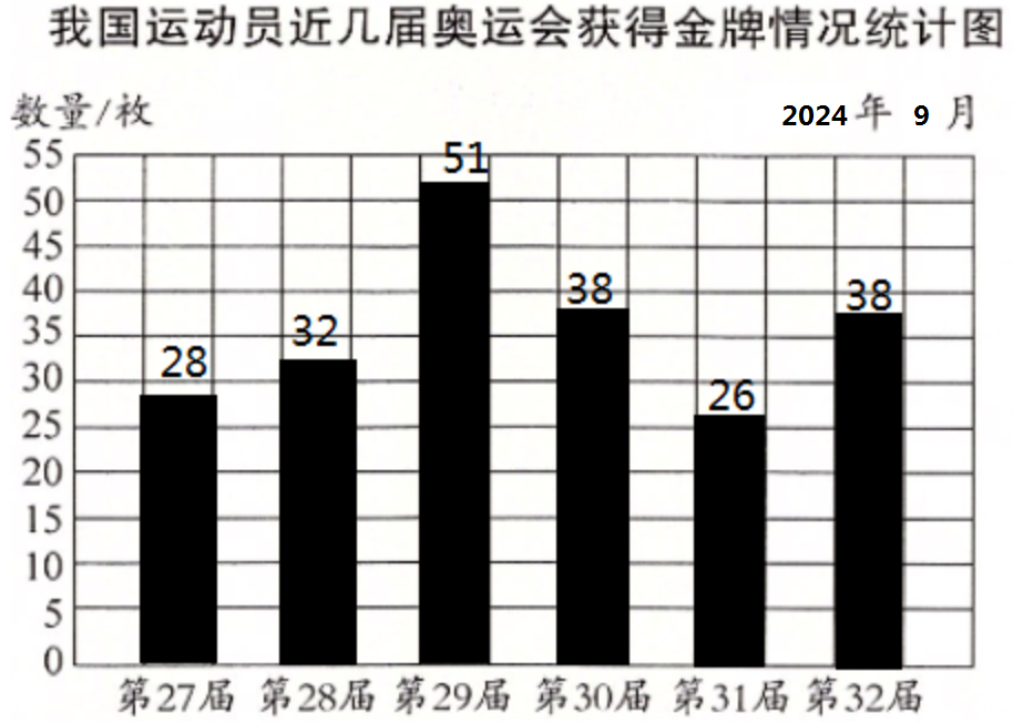 我國(guó)在第27屆到第32屆奧運(yùn)會(huì)中,第29屆獲得的金牌數(shù)最多,