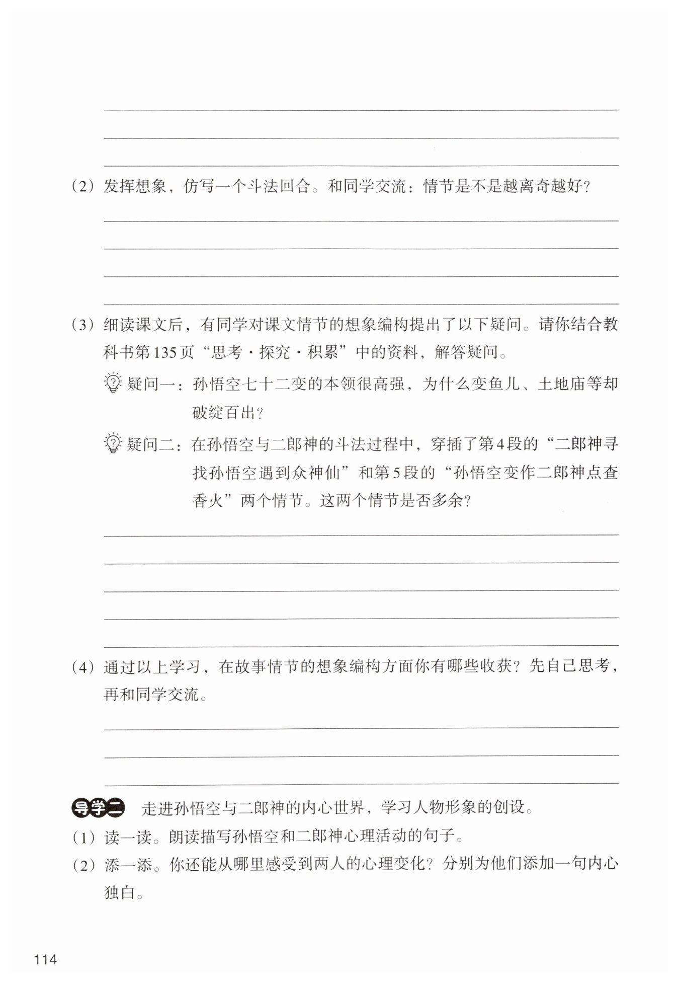 (疑問(wèn)二)這兩個(gè)情節(jié)并不多余。插入的這兩個(gè)情節(jié)既符合故事的發(fā)展,又能展示人物性格,還能讓情節(jié)張弛有度?!岸溕駥ふ覍O悟空遇到眾神仙”的情節(jié)一方面有利于表現(xiàn)人物形象:四太尉、二將軍的無(wú)能襯托了孫悟空和二郎神的本領(lǐng)高強(qiáng),而李天王的出場(chǎng)一能表現(xiàn)二郎神立功心切的心理,二也能反襯孫悟空的本領(lǐng)高強(qiáng)。另一方面,讓行文富于變化,增加閱讀趣味?!皩O悟空變作二郎神點(diǎn)查香火”的情節(jié)更是表現(xiàn)了孫悟空頑皮率真、藐視權(quán)貴的天性,給文章增加了詼諧之趣。