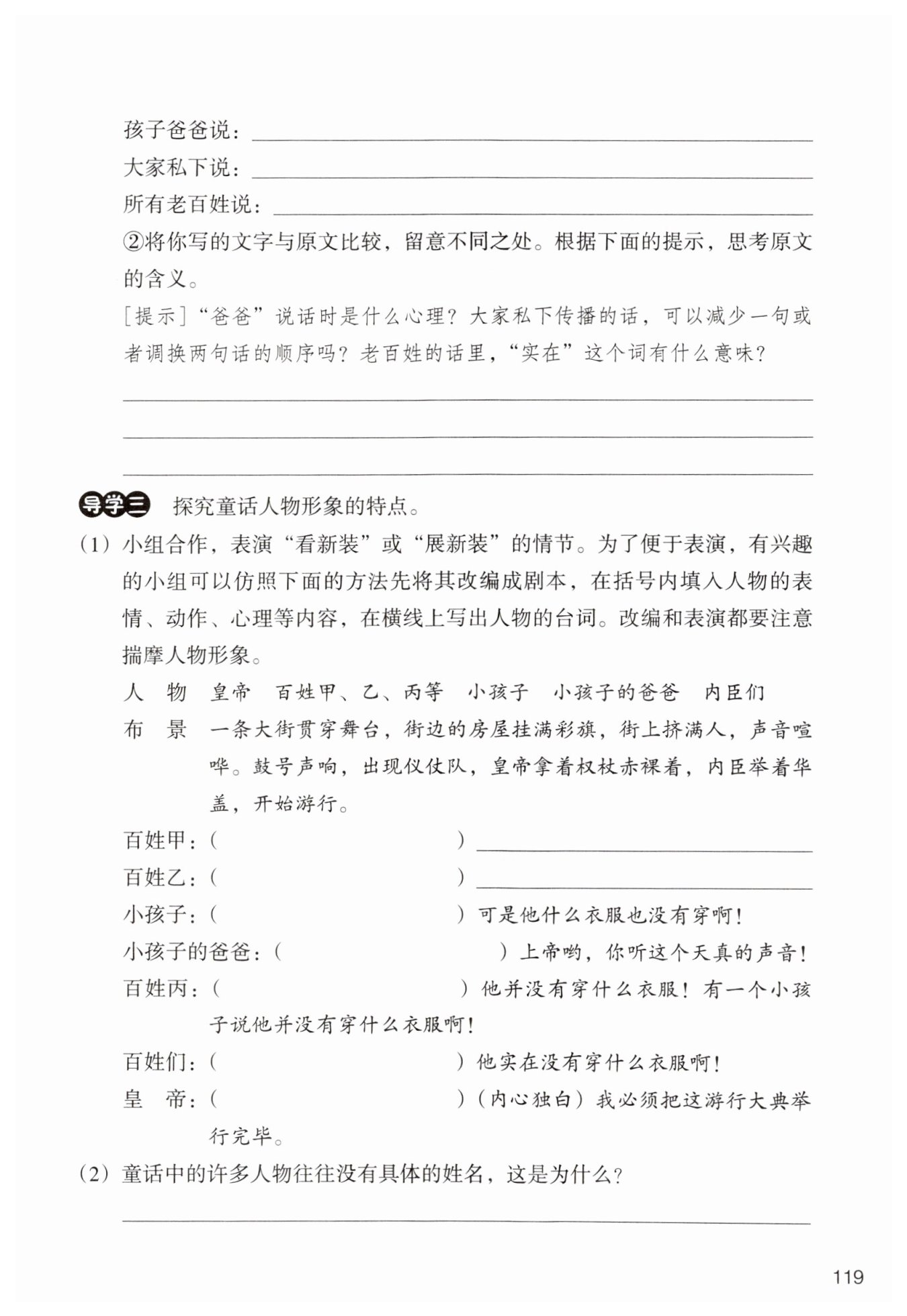 [示例]因為童話中的人物具有代表性,塑造的不是某個人物,而是某