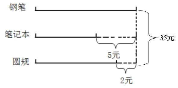 答:筆記本是9元,鋼筆是14元,圓規(guī)的單價是12元。