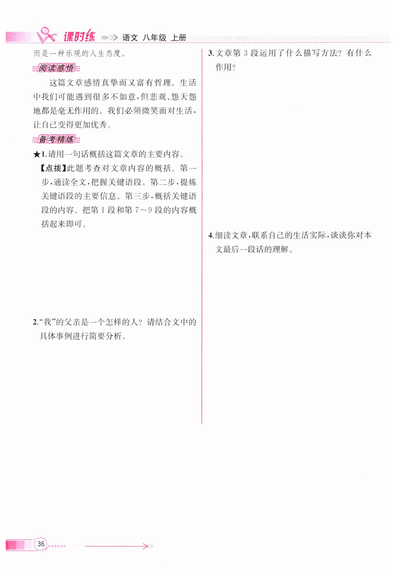 受益一生。③關(guān)心體貼兒子。想陪“我”考試,