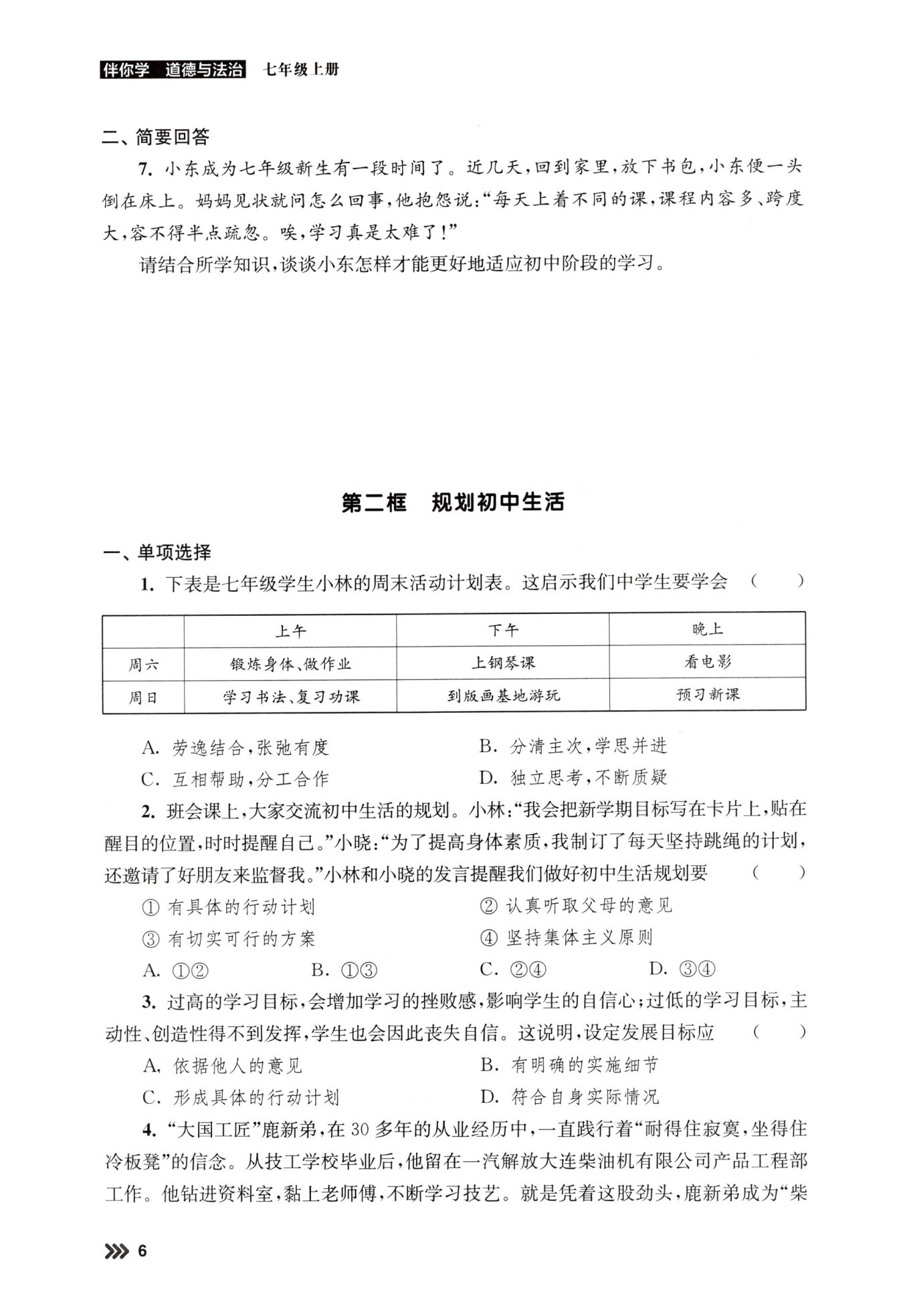 索。②面對(duì)剛進(jìn)入初中遇到的學(xué)習(xí)上的不適應(yīng),不能逃避或放棄,