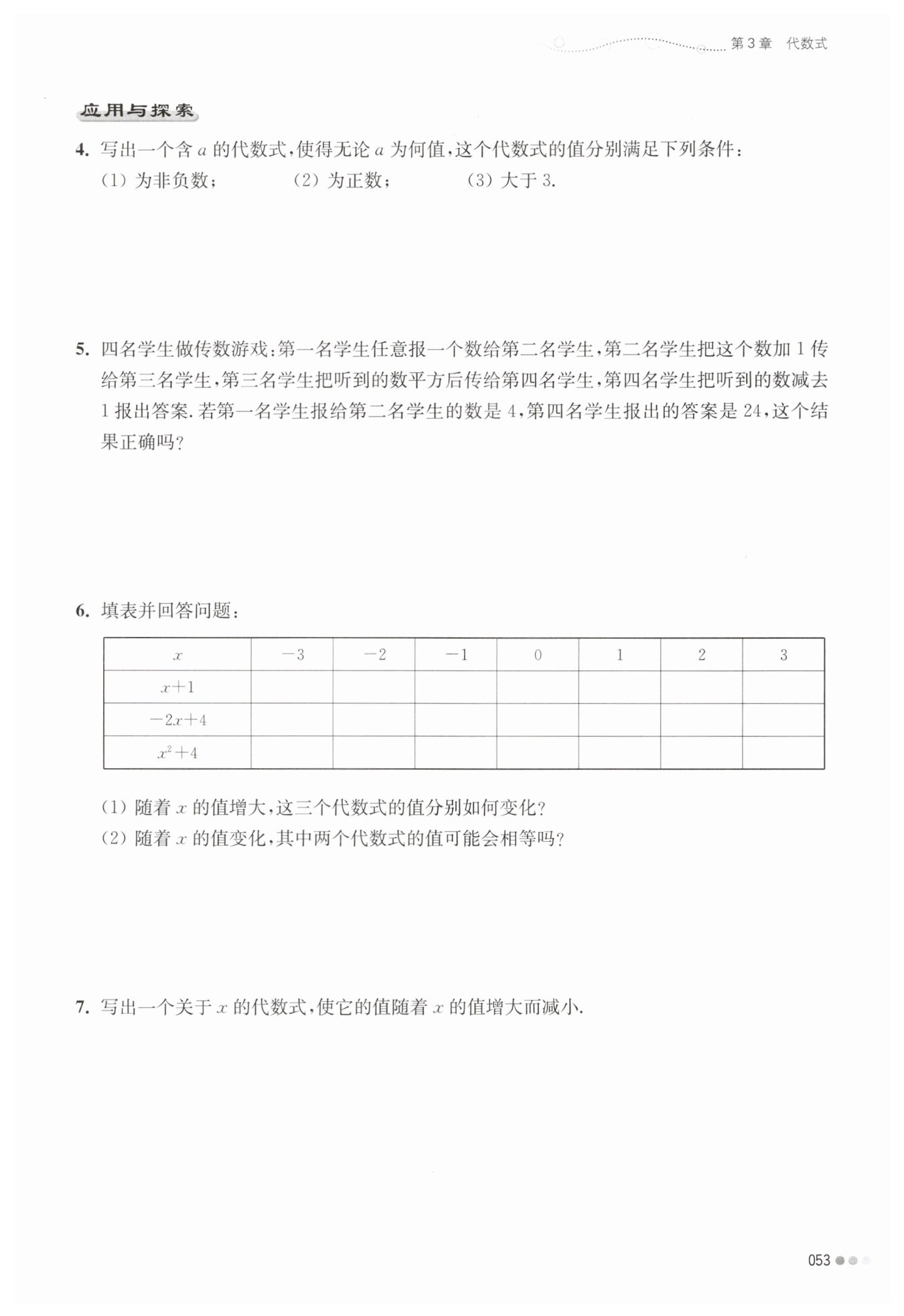 $? 解:(1)第一個(gè)代數(shù)式不斷增大,第二個(gè)代數(shù)式不斷減小,第三個(gè)代數(shù)式先減小后增大。?$