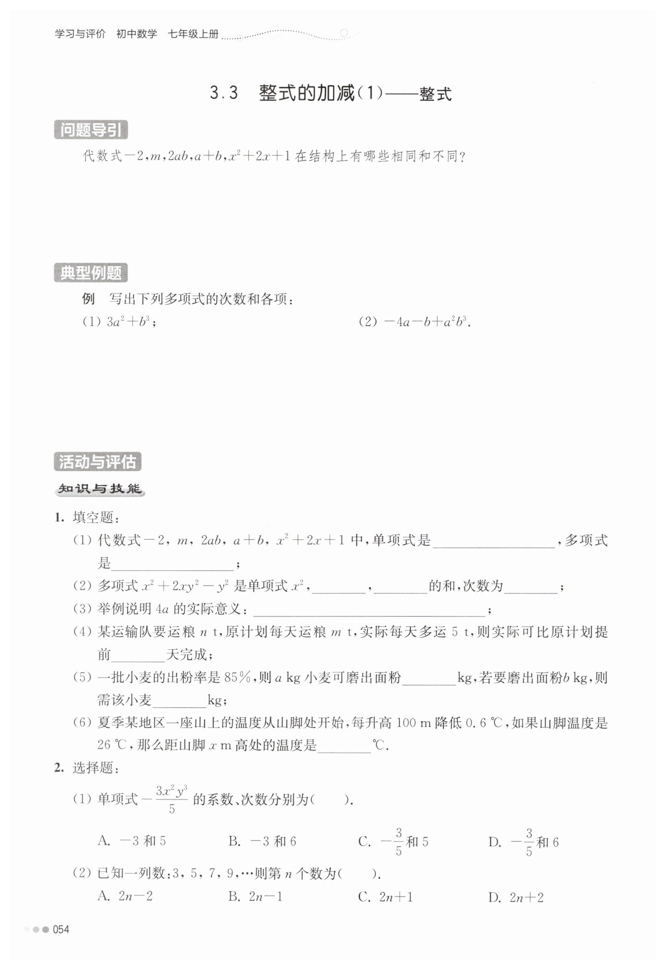 $ 解:(1)次數(shù)為3,兩項分別為3a2,b3$