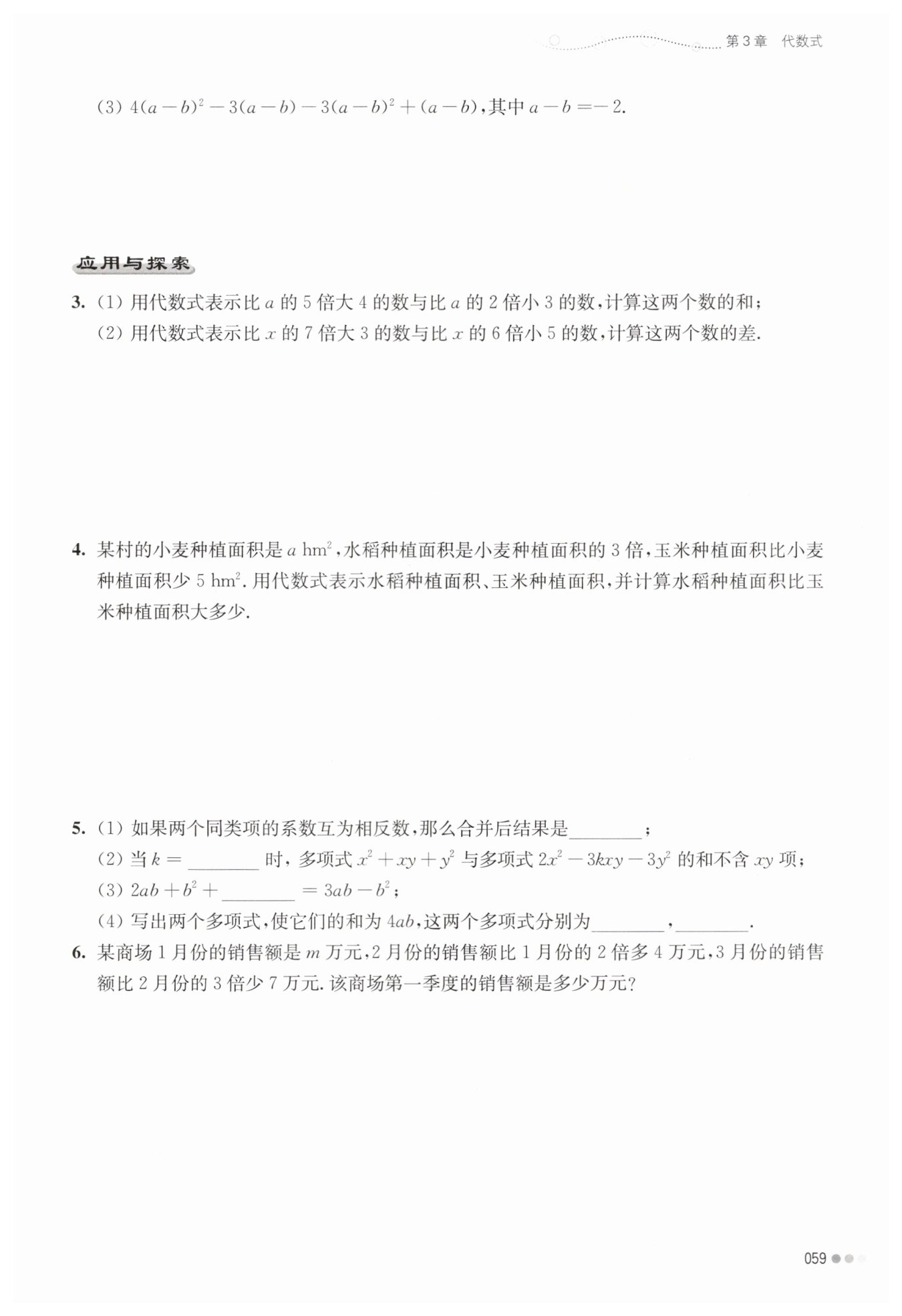 $?解: (1 )分別表示為5a+4 , 2a-3?$