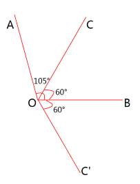 $當(dāng)OC在∠AOB的外部時,∠AOC=∠AOB+∠BOC=165°$