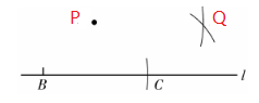 $解:作法:在直線l上任取B,C兩點(diǎn),以點(diǎn)P為圓心,BC長(zhǎng)為半徑畫弧,$ $再以點(diǎn)C為圓心、PB長(zhǎng)為半徑畫弧,兩弧交于點(diǎn)Q,則點(diǎn)Q即為所求.$
