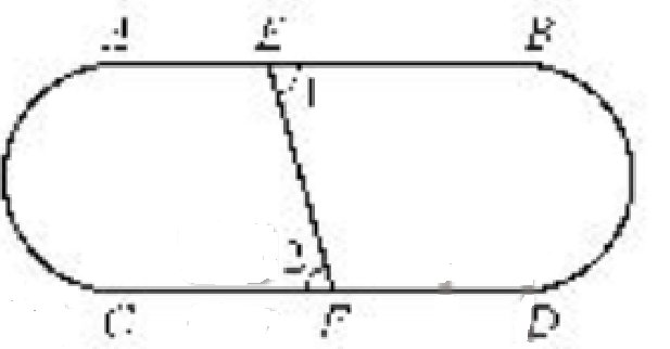 $ 解:作直線EF與玻璃的邊AB,CD相交,測(cè)量∠1,∠2的度數(shù),$ $若∠1=∠2,則AB//CD .$