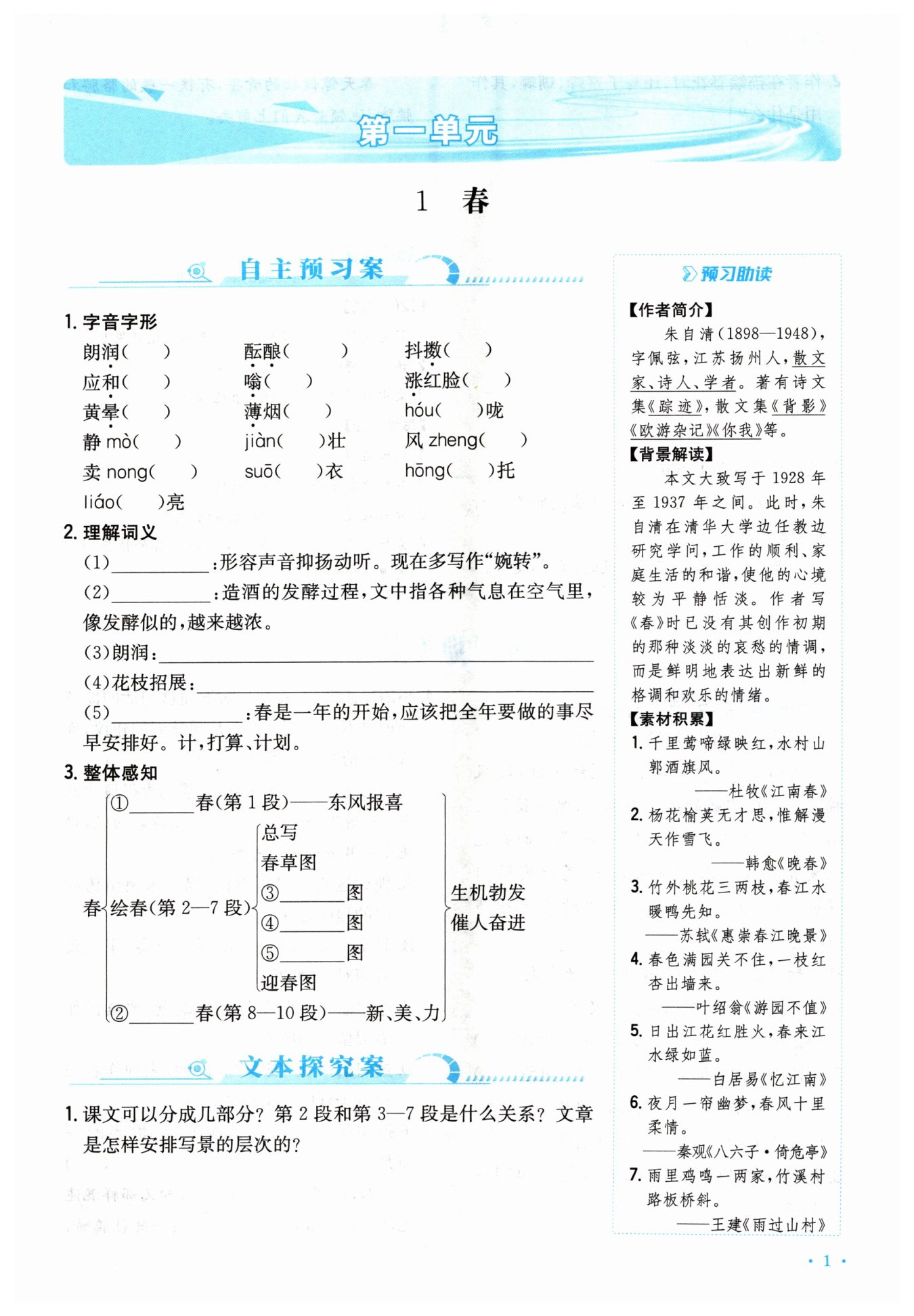 第3段至第7段是分寫,微觀描繪。先總寫,從大處勾畫春的