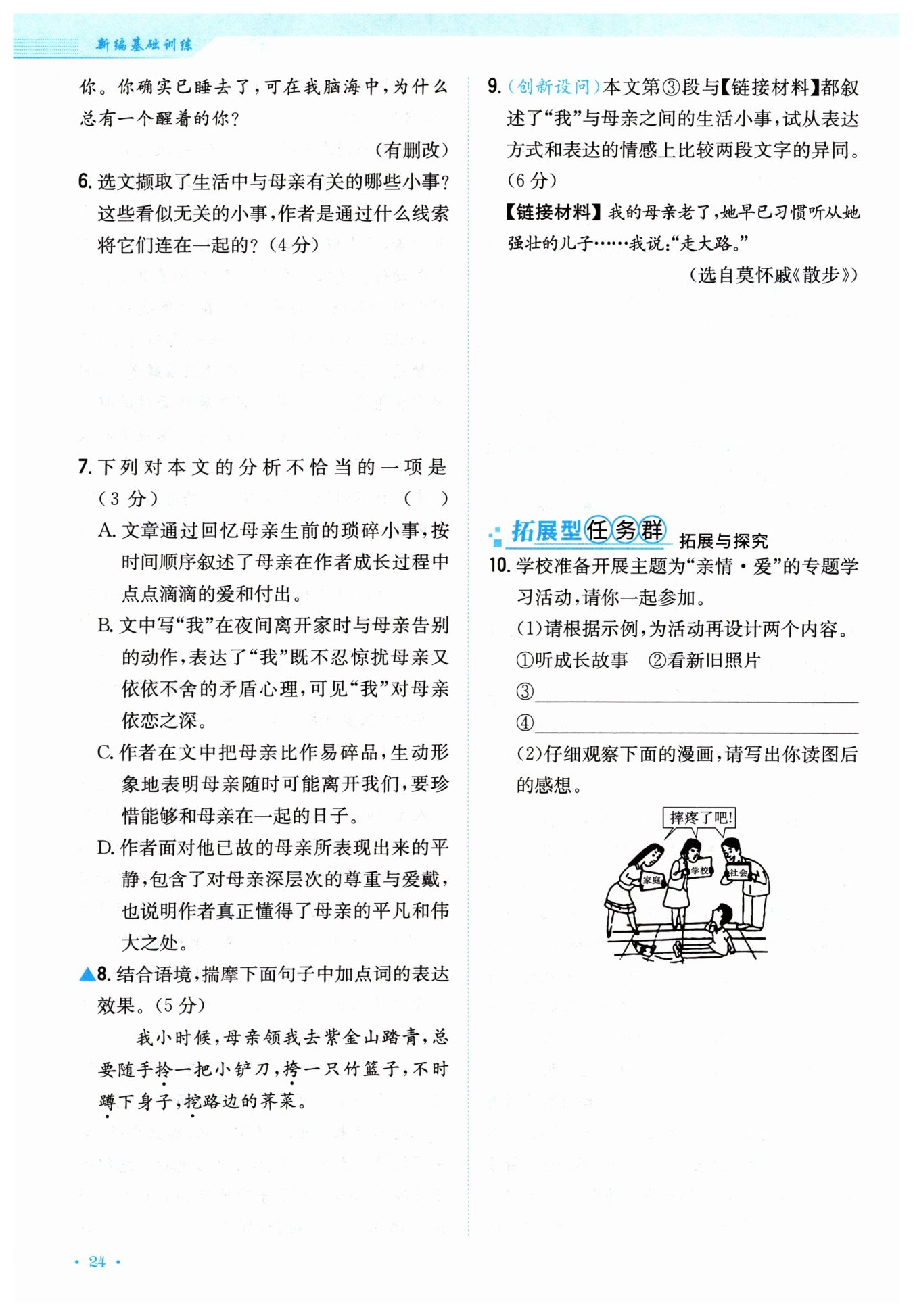 料】則重點(diǎn)表達(dá)了“我”對(duì)母親的尊重和孝順。