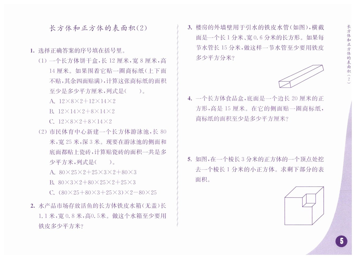 答: 剩下部分的表面積是54平方分米。
