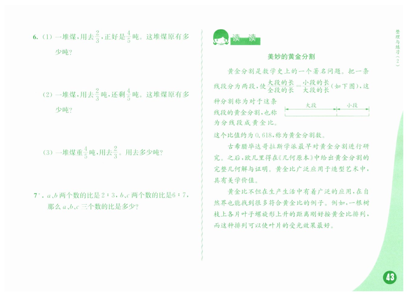 答:這堆煤原有 $\frac65$噸。