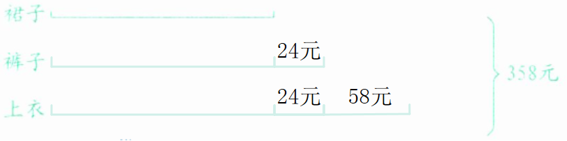 答:一條裙子84元,一條褲子108元,一件上衣166元。