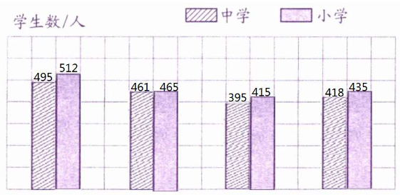 答:學(xué)校的在校學(xué)生逐漸減少,初中的人數(shù)也在減少。