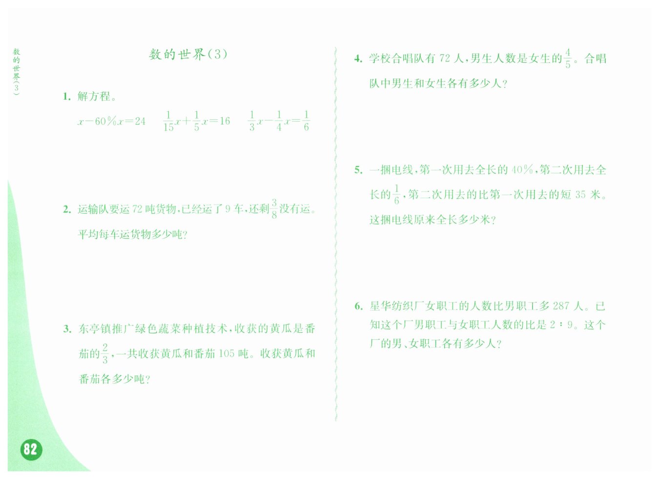 解:設這捆電線原來全長x米 40%x- $\frac16x=35$ 解得:x=150 答:這捆電線原來全長150米。