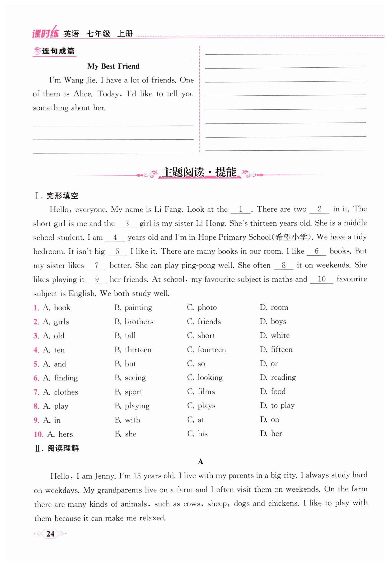 Alice's full name is Alice Green. She comes from Canada. She is thirteen years old now. Alice likes pandas very much. She thinks they are very cute. She wants to come to China to see pandas. In her free time, Alice loves reading books at home. She also likes singing songs and playing the guitar.