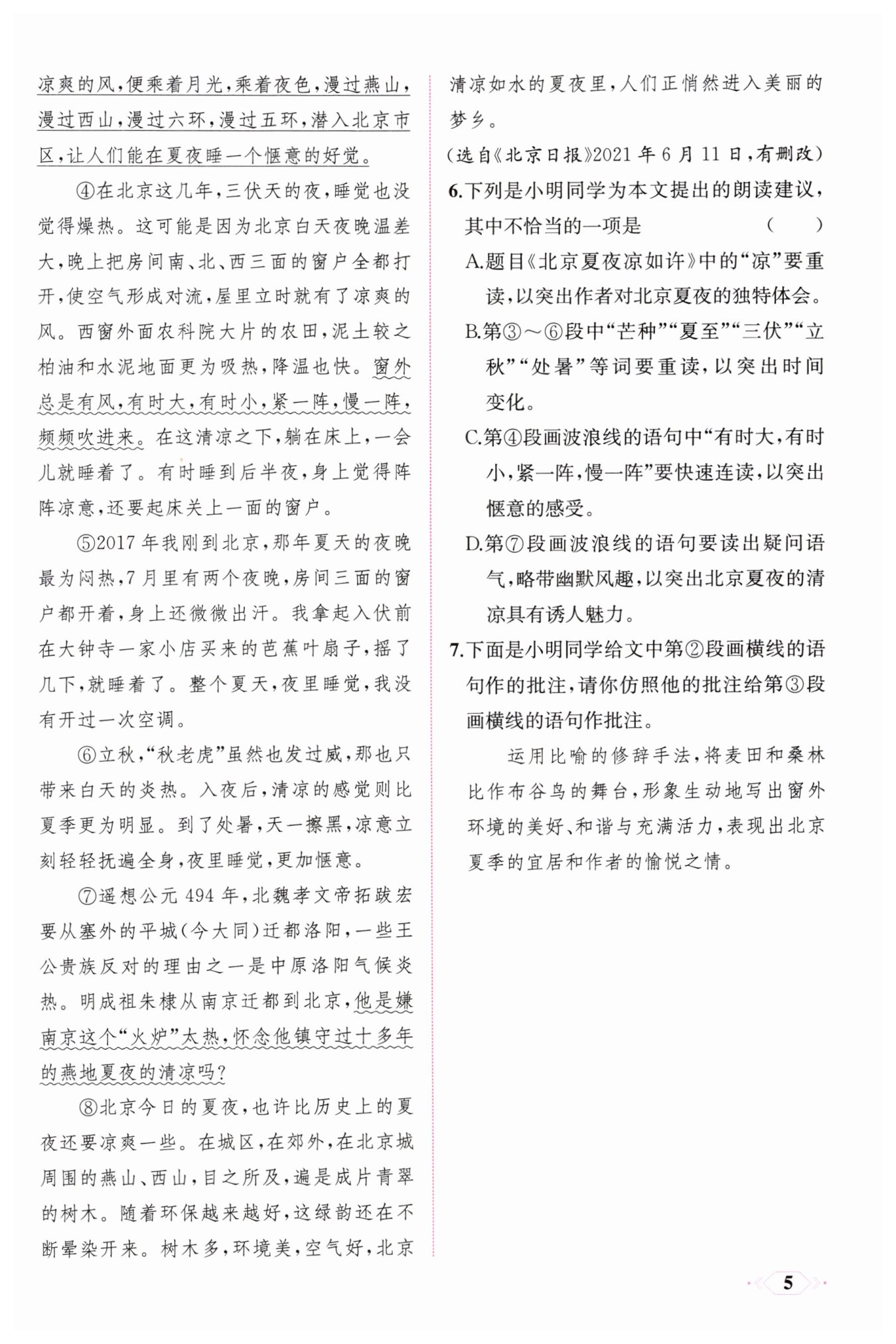 息,表現(xiàn)出北京夏夜的清涼、美好和作者