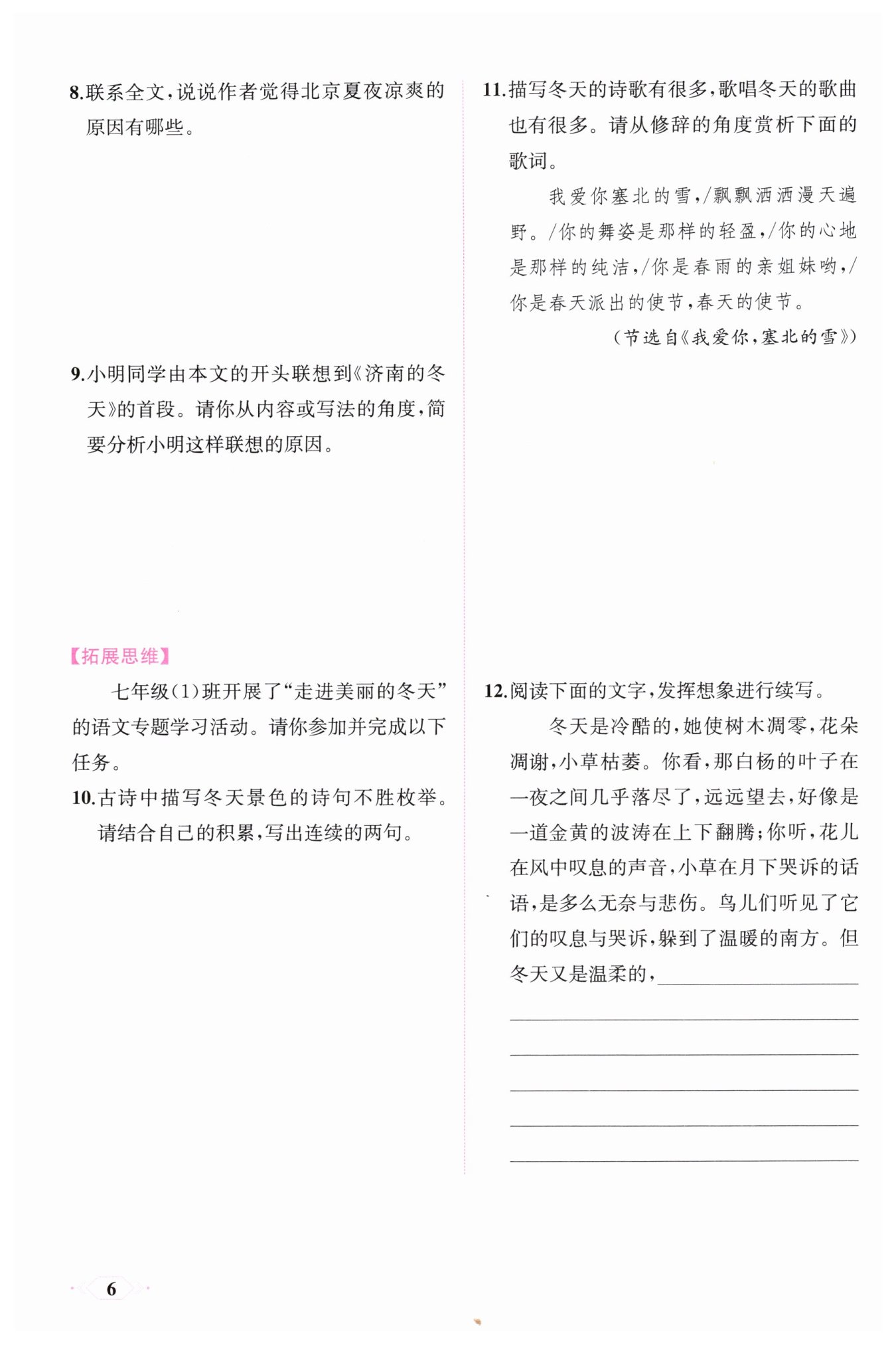 突出北京夏夜的涼爽;《濟(jì)南的冬天》首