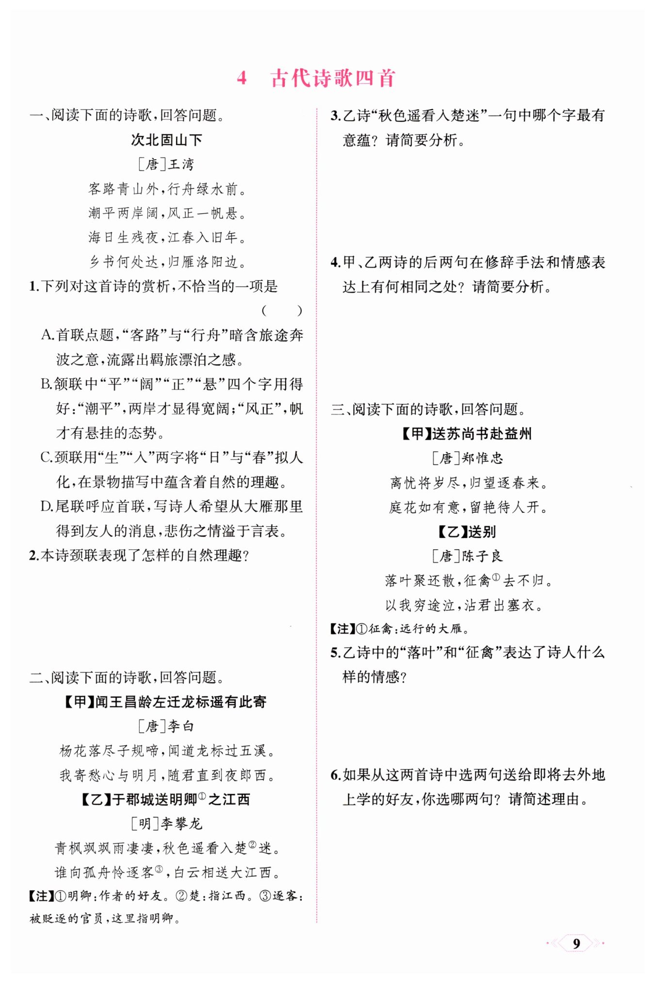 “落葉”“征禽”表達(dá)了詩(shī)人漂泊、孤苦的深沉