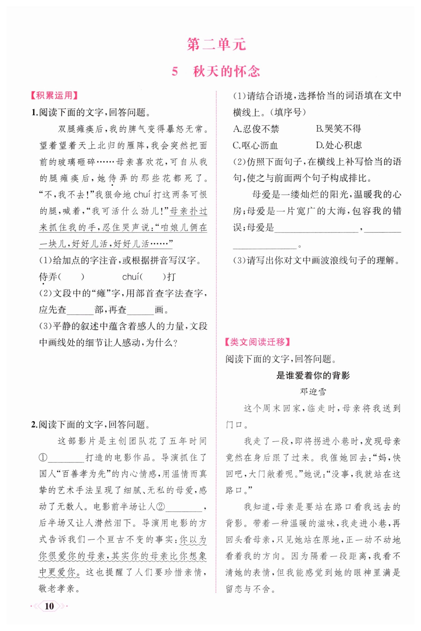示例:養(yǎng)兒一百歲,長憂九十九。母愛是