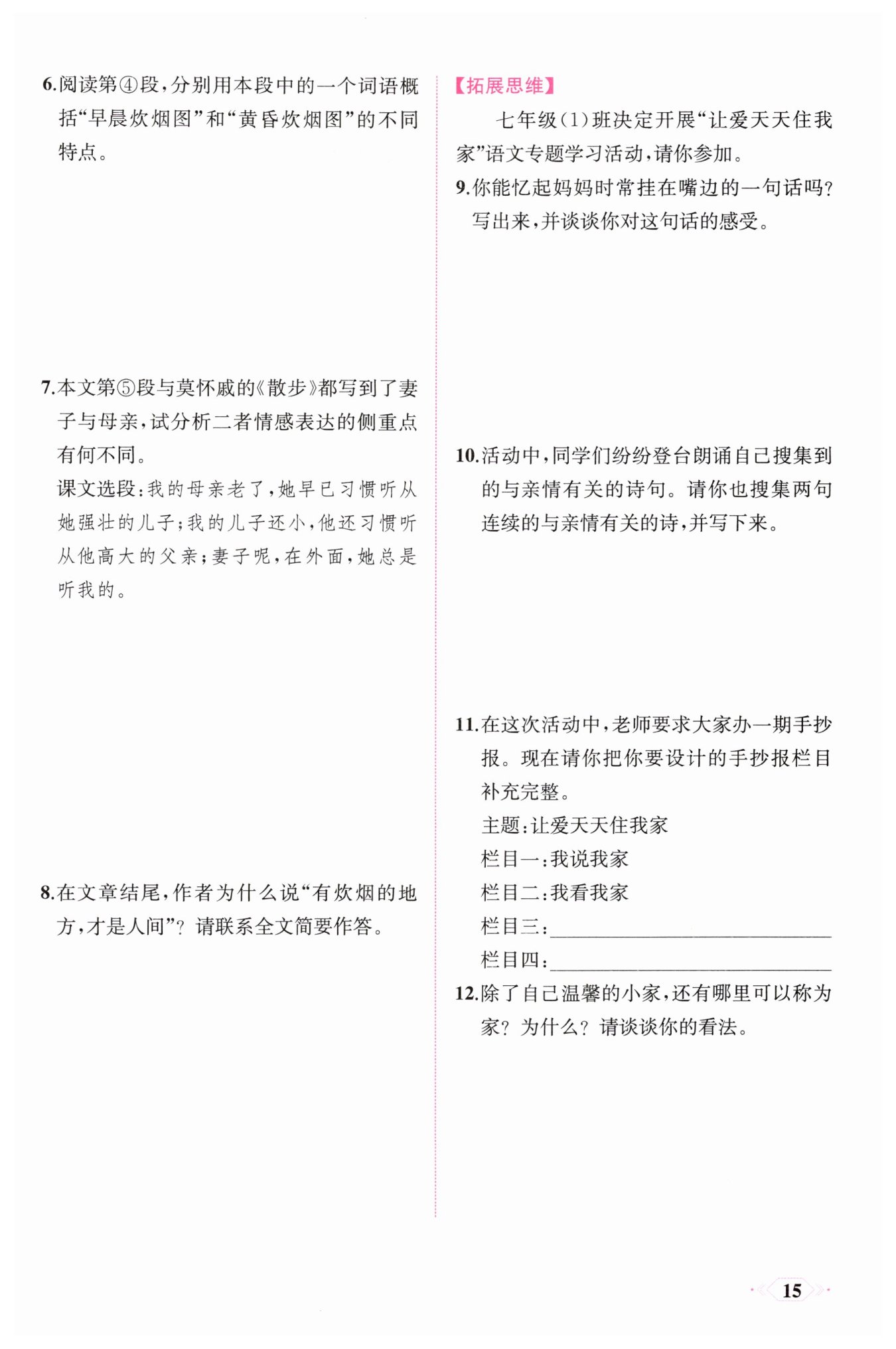 樸實(shí)、單純。③炊煙體現(xiàn)了家的味道,因