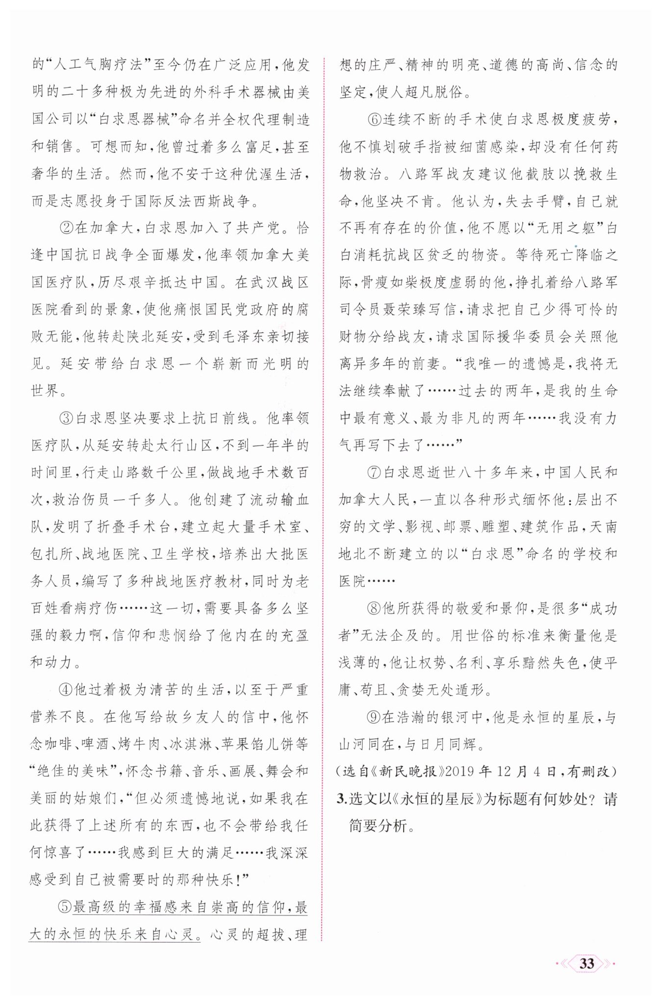 ①“星辰”指白求恩,運(yùn)用了比喻的修辭手