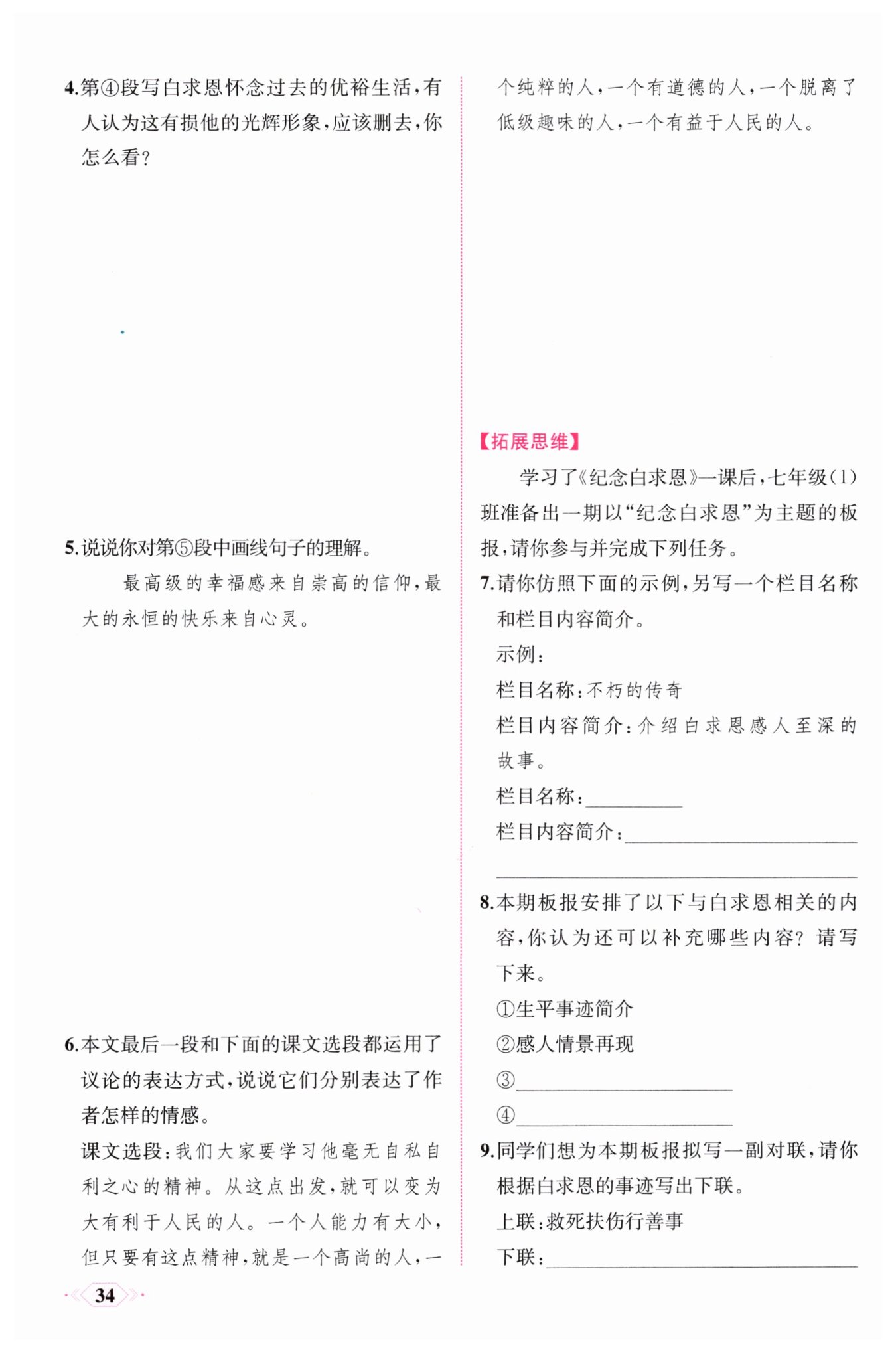 白求恩精神的重大意義,表達(dá)了作者對(duì)白求