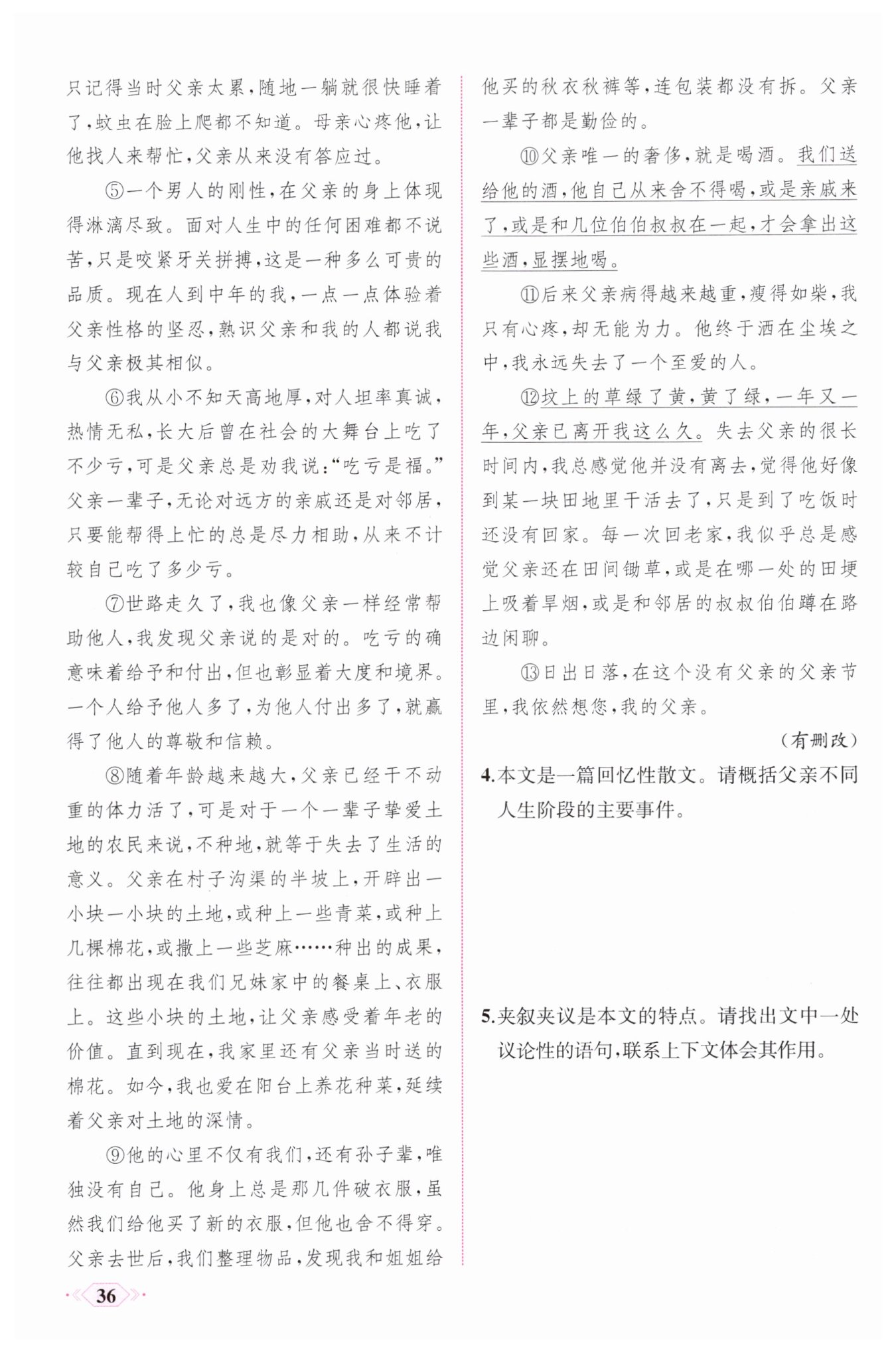 示例:第⑤段“一個(gè)男人的剛性,在父親的